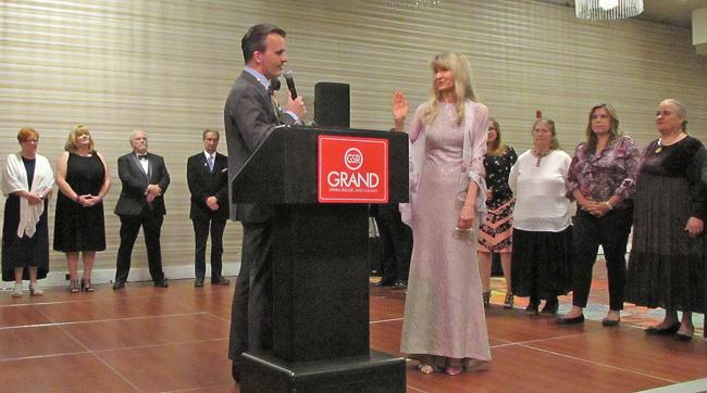 One of the highlights of the Annual Meeting Grand Banquet, held on June 24, 2018 in Reno, NV, was the installation of new Officers and Directors.Below, Cynthia Leachmoore, EA is installed as 2018-2019 CSEA President by NAEA Executive Vice President Robert Kerr, EA. To his left stand newly installed CSEA First Vice President Joyce Cheng, EA, Second Vice President Susie DiMaggio, EA, Treasurer Bruce Miller, EA, and Secretary Rico Delodovici, EA, , along with 2018-2019 State Directors.
